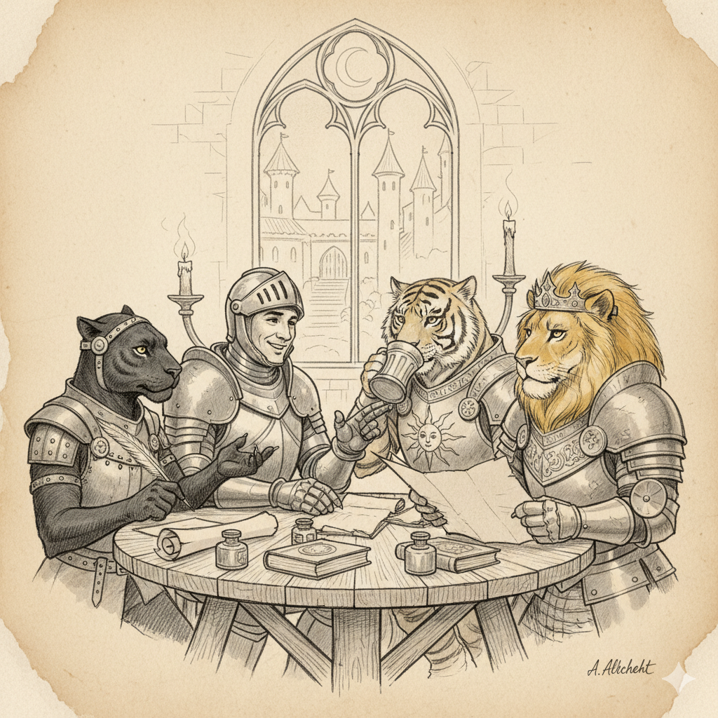 26feb20:002.098 Panther, Tiger & Co.Sippung:Das Reych trägt zu allen Sippungen volle Rüstung * Bandelier ** Dunkles Gewams *** Festgewams