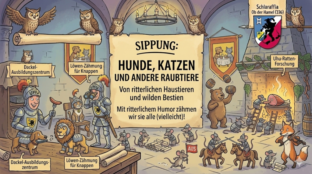 11feb20:002.126 Hunde, Katzen und andere RaubtiereSippung:Das Reych trägt zu allen Sippungen volle Rüstung * Bandelier ** Dunkles Gewams *** Festgewams