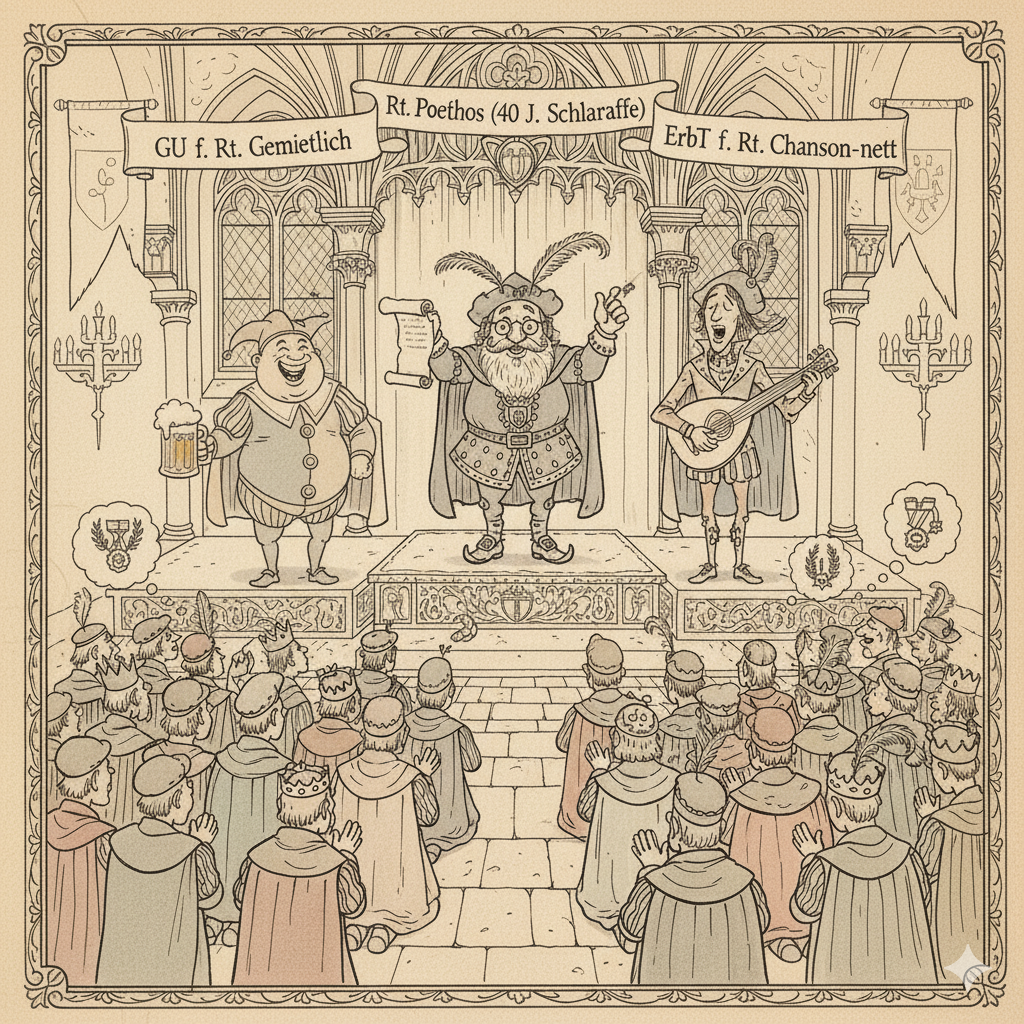 09okt19:00Festsippung2.080 Rt Poethos 40 J. Schlaraffe, GU f. Rt Gemietlich,ErbT f. Rt Chanson-nett ***Festsippung:Das Reych trägt zu allen Sippungen volle Rüstung * Bandelier ** Dunkles Gewams *** Festgewams