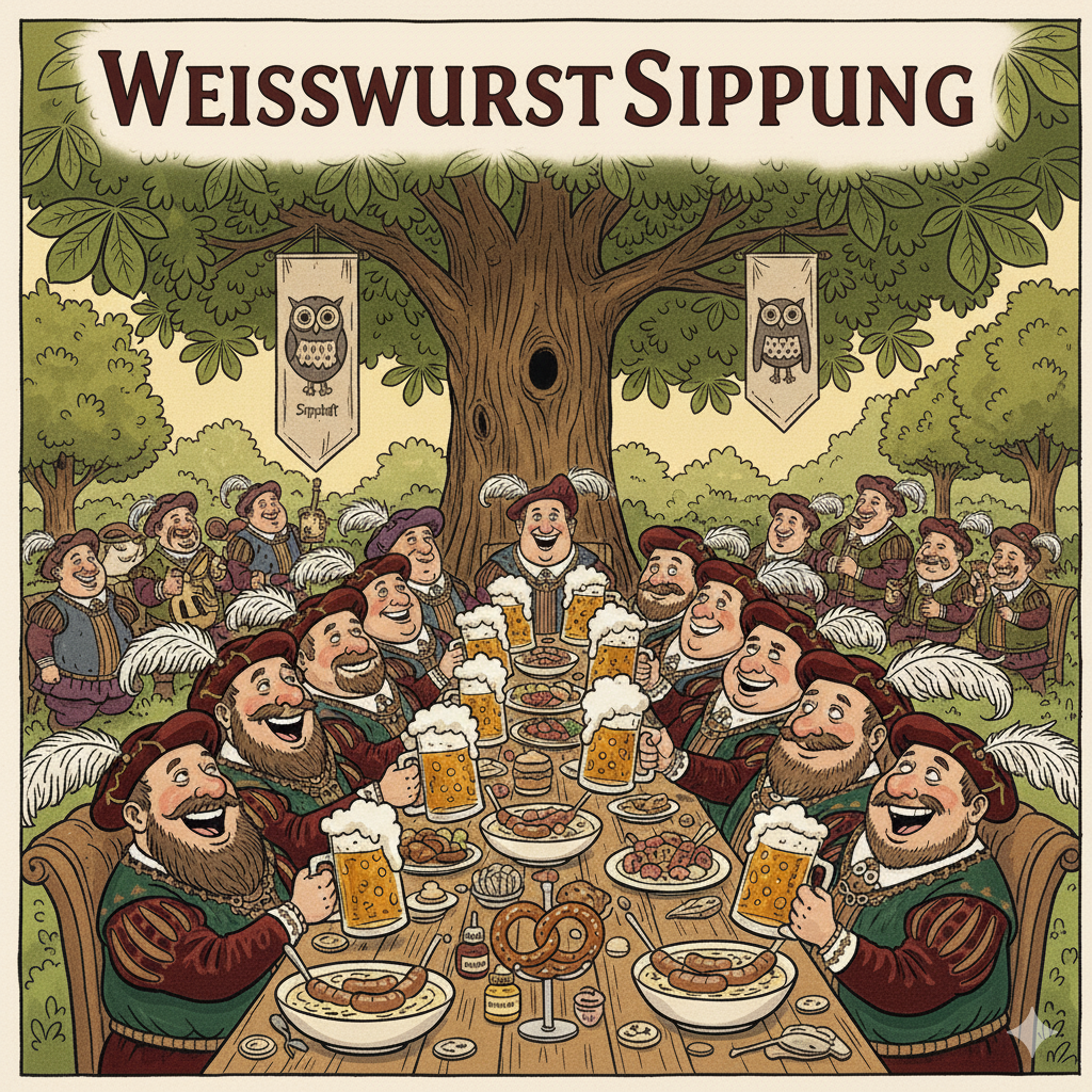 30okt20:002.083 Weißwurst-Sippung, Labung u. Atzung ab Gl. 7 d.Sippung:Das Reych trägt zu allen Sippungen volle Rüstung * Bandelier ** Dunkles Gewams *** Festgewams